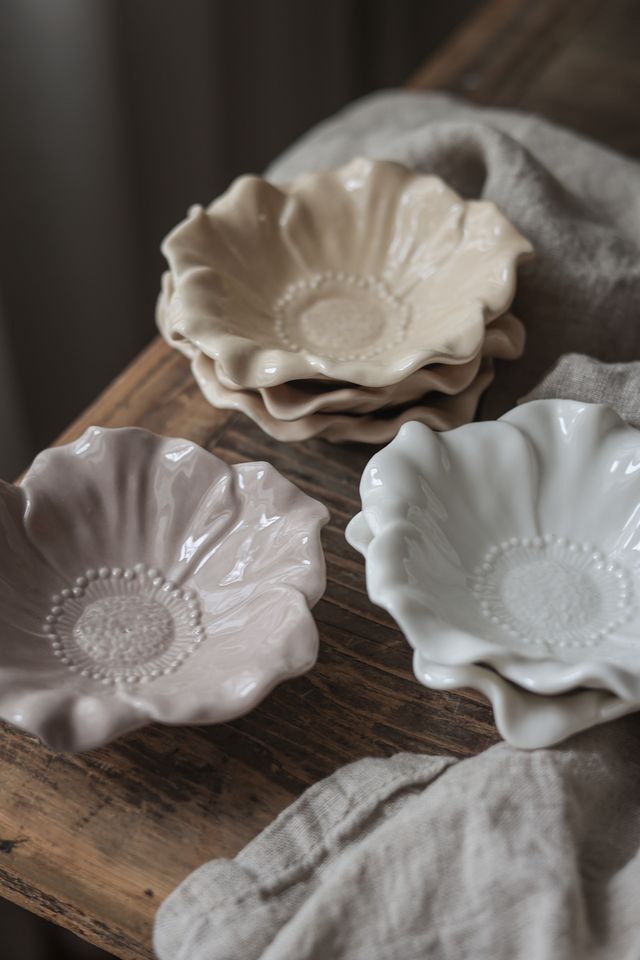 Blomstra skålarna är ljuvliga hantverk i blomstrande anda med detaljer som ger det där lilla extra till det dukade bordet. Matcha med ljusstakar i samma blommande känsla. Strl 11x3 cm. Säljs i tre olika färger: Sand, White och Cloud. Säljs styckvis. Gjord i keramik som tål micro och diskmaskin samt är foodsafe säkrad. Säljs med 10% förmån till vår hjärtesak Barncancerfonden