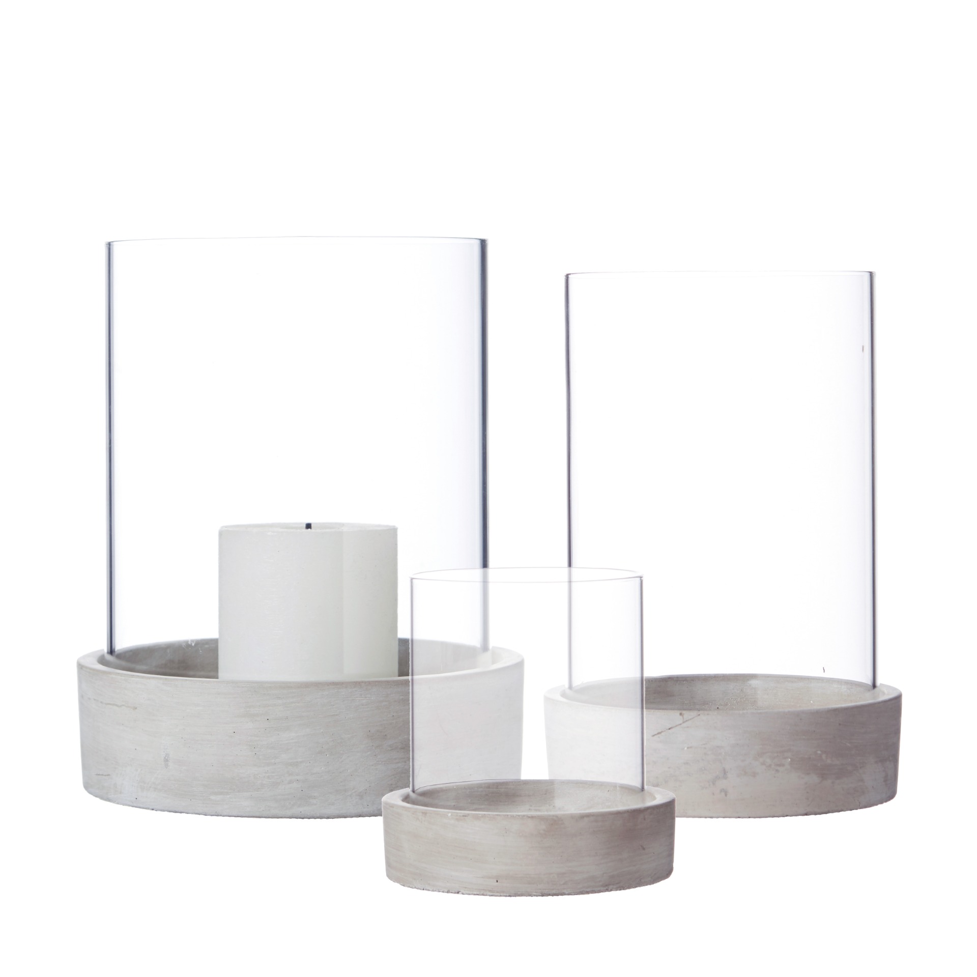 Läckra lyktor i betong och glas. Set om 3 st. Storlek: 17x21, 13x20 och 10x10cm.