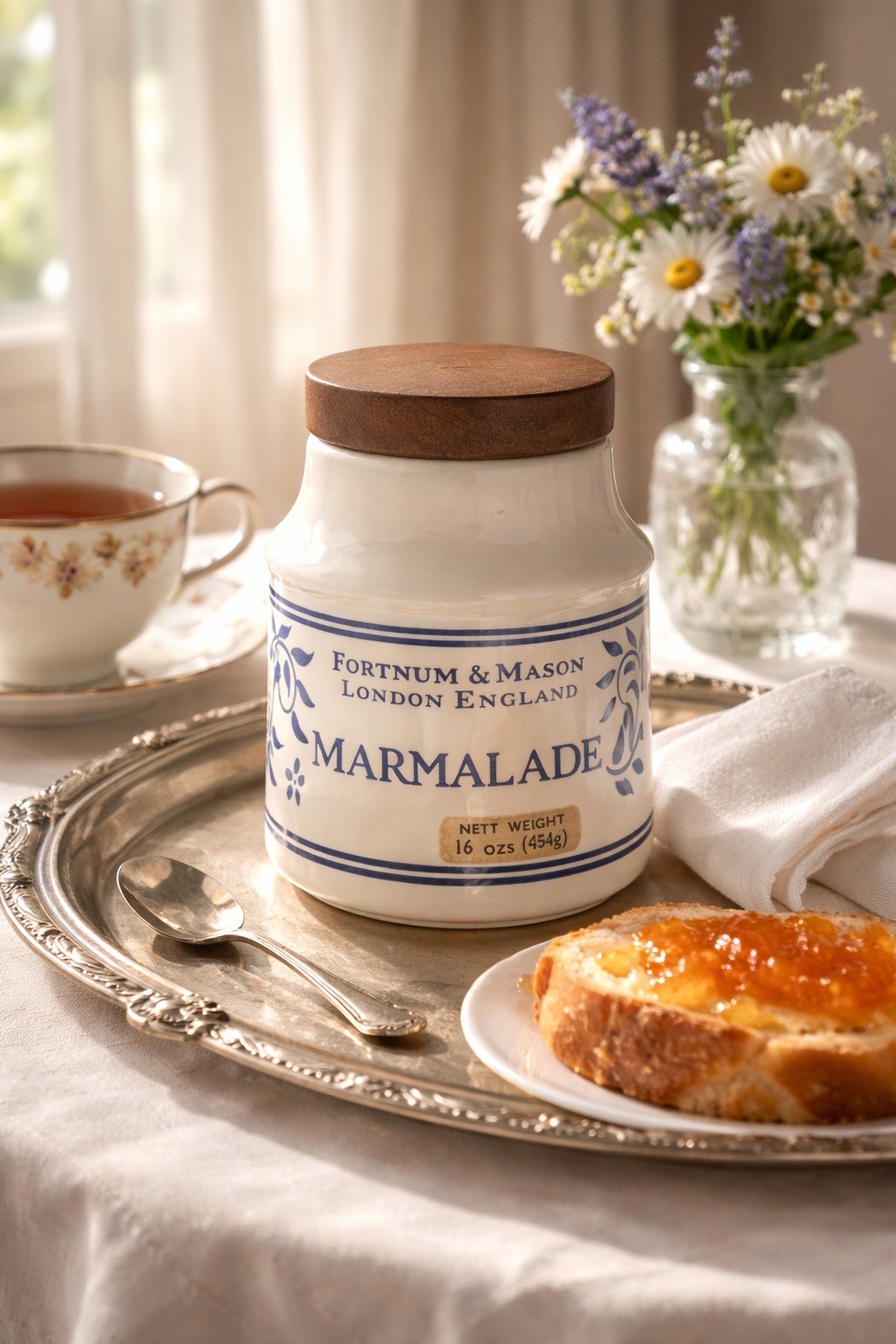 Fin engelsk marmeladburk i porslin med trälock. Begagnad.