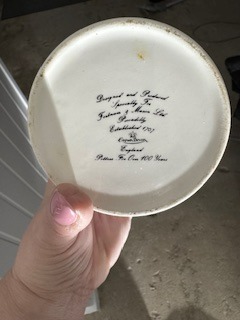 Text i botten: Designed and produced specially for Fortnum & Mason Ltd. Piccadilly, Estableshed 1707. Crown Devon, England. Potters for over 100 years (se bild på text).