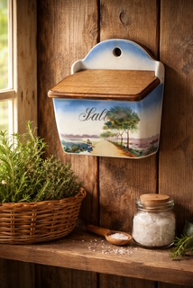 Äldre saltkar i porslin. Fint mönster på framsidan. Begagnad. Märke och nr i botten (se bild).