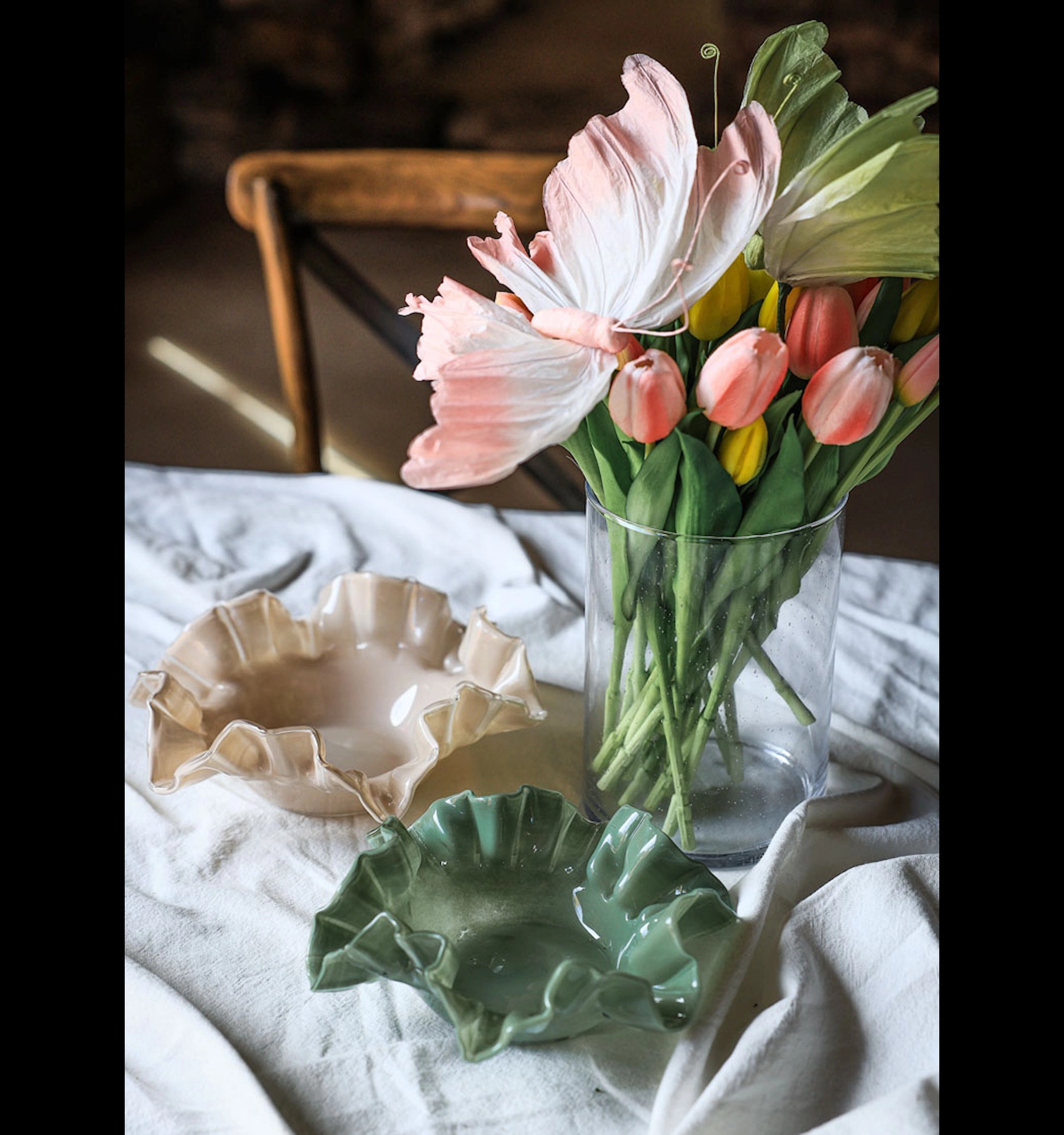Denna vackra skål i beige formad som ett blomblad är perfekt för att lägga små snäckor, stenar eller andra småsaker i. Den blir också en dekorativ detalj att ha på soffbordet eller i fönstret. Tillverkad i glas.