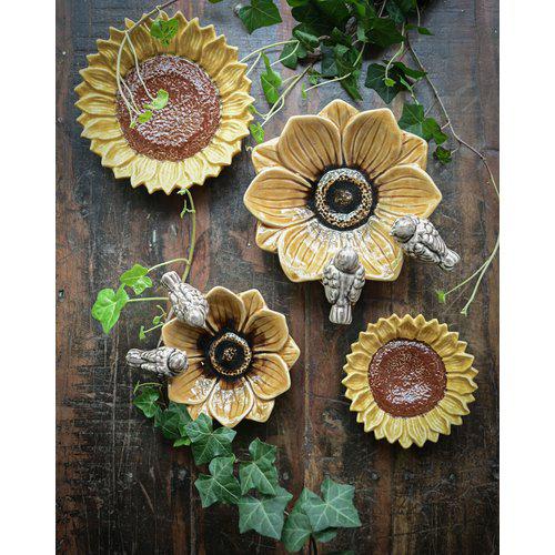 Superfint set med skålar som ser ut som solrosor. Kan användas både som dekoration inne alternativt ute på altanen eller balkongen. Det stora fatet är 20x6 cm och det mindre 15x5 cm. Material: Stengods. Märke: Wikholm form.